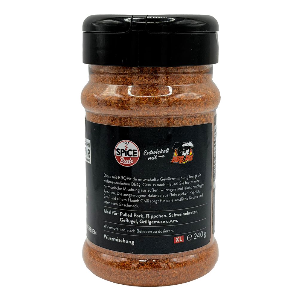 Unser BBQPit Pork gibt es jetzt im praktischen XL-Streuer (240 g) — perfekt für alle, die öfter grillen, smoken oder einfach gern großzügig würzen. In Zusammenarbeit mit Thorsten Brandenburg von BBQPit.de haben wir eine Mischung entwickelt, die Schweinefleisch zum Star macht, dabei aber so vielseitig ist, dass sie auch Geflügel, Rind oder Gemüse auf das nächste Level hebt.